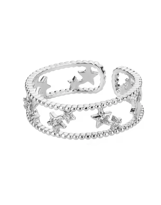 Bague — modèle étoile à double couche en acier inoxydable. Réglable et stylée, cette bague bohème est l’accessoire incontournable des nouvelles tendances.