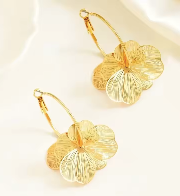 Boucles d’oreilles créoles à fleurs – Acier inoxydable