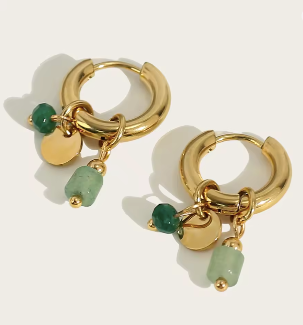 Adoptez un style frais et audacieux avec ces boucles d’oreilles créoles dorées, sublimées par de magnifiques perles vertes au fini nacré. Leur design harmonieux allie la chaleur du doré à la profondeur du vert pour un rendu à la fois chic et original.